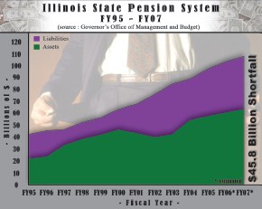 Gov. Rod Blagojevich took office, Republicans argue the future of the pension systems - and the increasing liability of the